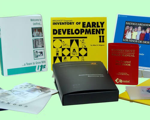 Process printing is available on a variety of materials. These materials are Vinyl, Laminated paper wraps, Poly and SBS board. This process allows you to print color photo on your binders, cover stocks and folders. |