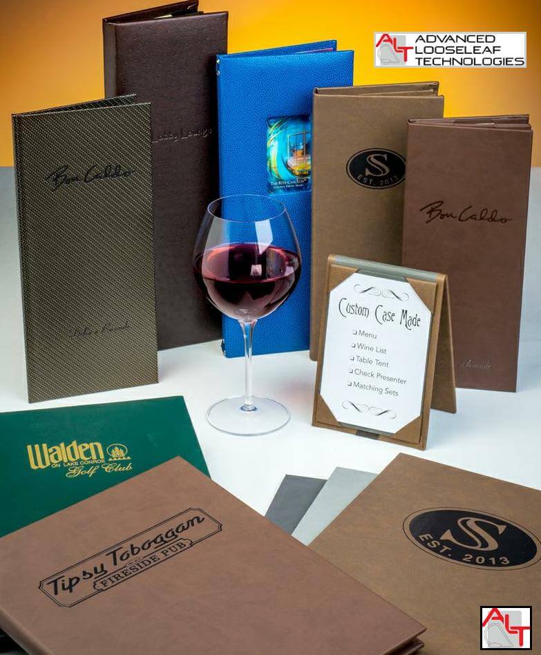 (click on thumbnail to enlarge)  Custom Turned Edge Specialty Case Made Menu Covers ALT offers the finest custom case made menu covers and other specialty restaurant items made to order from a wide variety of high-end cover materials, book cloths, fabric, paper and other materials. Many off the shelf menu covers are simply not built to last and don't offer the same upscale look, feel and construction of a turned edge casemade menu cover. Constructed like the cover of traditional long lasting hard-cover books, a casebound turned edge menu cover is built to endure the restaurant environment while promoting a restaurants most important money-making products!